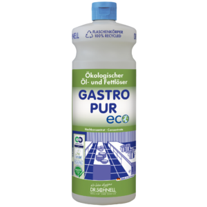 - GASTRO PUR ECO ist ein hochwirksamer, ökologischer Öl- und Fettlöser von Dr.Schnell, speziell entwickelt für den Einsatz in allen Lebensmittel verarbeitenden Betrieben wie Großküchen, Bäckereien und Metzgereien.