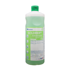 Dreiturm GOLDREIF® SEIFENWISCHGLANZ ist ein hochwertiges Wischpflegekonzentrat auf Basis natürlicher Seife zur schonenden Unterhaltsreinigung aller wasserbeständigen Bodenbeläge. Der Reiniger hinterlässt einen seidenglänzenden, rutschhemmenden Pflegefilm, der die Wiederverschmutzung deutlich reduziert.