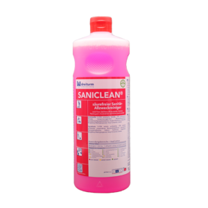 Der SANICLEAN Sanitär-Allzweckreiniger von Dreiturm ist ein leistungsstarker, säurefreier Reiniger für die tägliche Unterhaltsreinigung aller abwaschbaren Ober- und Bodenflächen. Dank seiner alkalischen Einstellung entfernt er zuverlässig Hautfette, Seifenreste und leichte Verschmutzungen – ganz ohne Säure oder Phosphate.