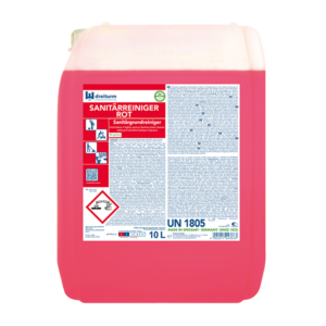 Der Dreiturm SANITÄRREINIGER ROT ist ein hochwirksamer, viskoser Sanitärgrundreiniger zur kraftvollen und materialschonenden Entfernung hartnäckiger Verschmutzungen im Sanitärbereich. Durch seine dickflüssige Konsistenz haftet er optimal an senkrechten Flächen und eignet sich ideal für die Innenreinigung von Toiletten, Urinalen und Sanitärkeramik.